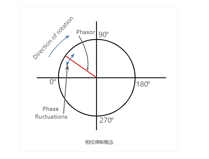 相位调制通过调制信号的相位来工作,即改变点围绕圆移动的速率。如果不应用调制,这会改变信号的相位。换句话说,围绕圆的旋转速度被调制为关于平均值。