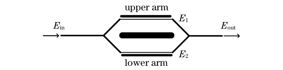图1表示一个理想的 MZI结构。不 考 虑 波 导 损 耗,并认 为 波 导 性 质 对 称,设 输 入 光 场 为 Ein = E0exp(jwct),Y 分支处为等功分器,上下臂的偏置 电压 分 别 为 V1 和 V2,调 制 信 号 电 压 为 v1 (t)和 v2(t),则可知经过上下臂调制后的光场输出为