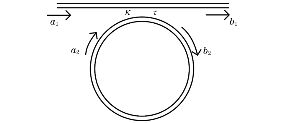 式中:κ 为耦合 系 数,τ 为 透 射 系 数,且κ2 +τ2 =1。光在微环中传播一周,有