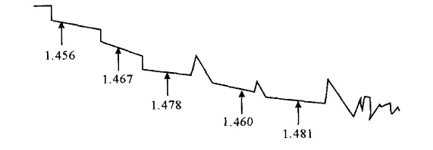 分段设置折射率波形图 这里需要注意: 引起测定光纤距离的误差主要有3 个因素: ①定时误差; ②OTDR 距离分辨率;③光纤的 折射率。